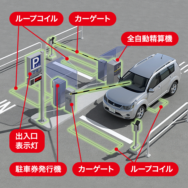 駐車券の発行、駐車場料金の計算、領収証の発行など、入場から出場まですべて自動で行います。事前精算システムを追加できるなど、優れた拡張性を備えており、質の高いパーキングサービスを提供することで運営・管理の省力化に貢献します。